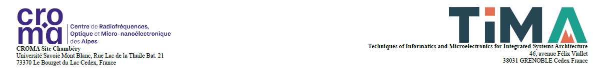CROMA laboratory is represented by Pietro M. FERREIRA, Full Professor at Université de Savoie Mont Blanc. His research interests are design methodologies and microwave instrumentation techniques for ultra-low power integrated circuits in harsh environments. Recent projects aim the Internet of Things industry considering IA edge and reliability. TIMA laboratory is represented by Ioana VATAJELU, CRCN CNRS. Her research interests are on design and design-for-dependability of beyond-CMOS neuromorphic circuits.